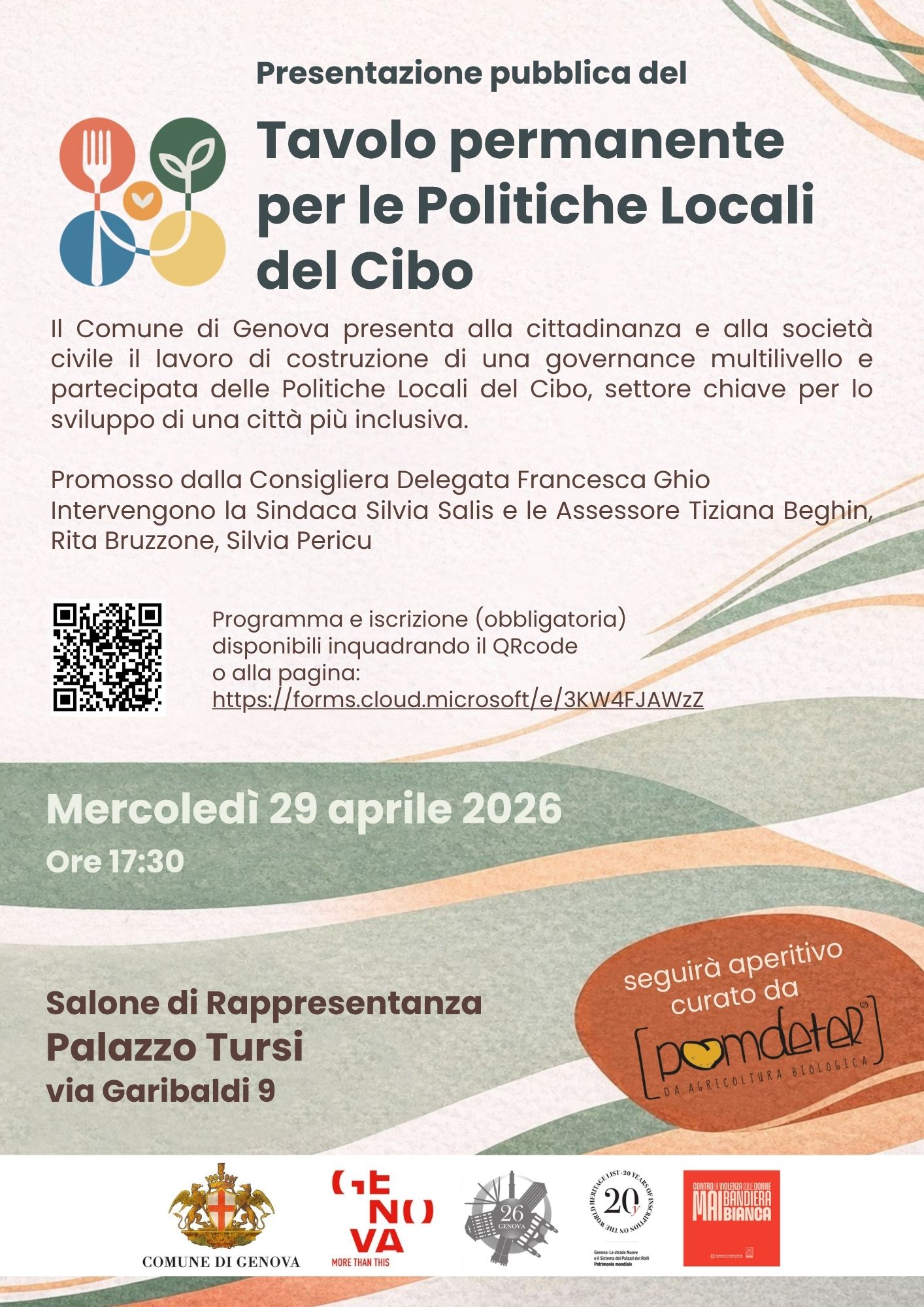 On Wednesday, April 29, at 5:30 p.m. in the Salone Rappresentanza of Palazzo Tursi, the University of Genoa will participate in the public presentation of the Permanent Committee for Local Food Policies, organized by the City Hall of Genoa.