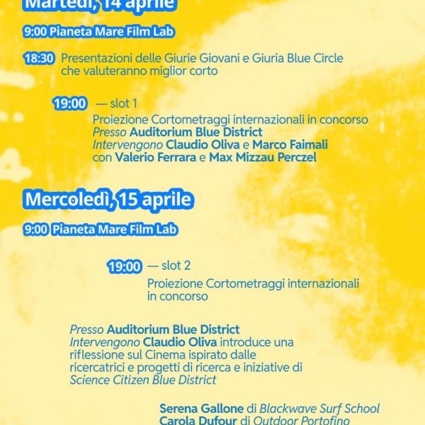Martedì 14 aprile - Dalle 9:00 alle 18:00 prosegue il Pianeta Mare Film Lab.
