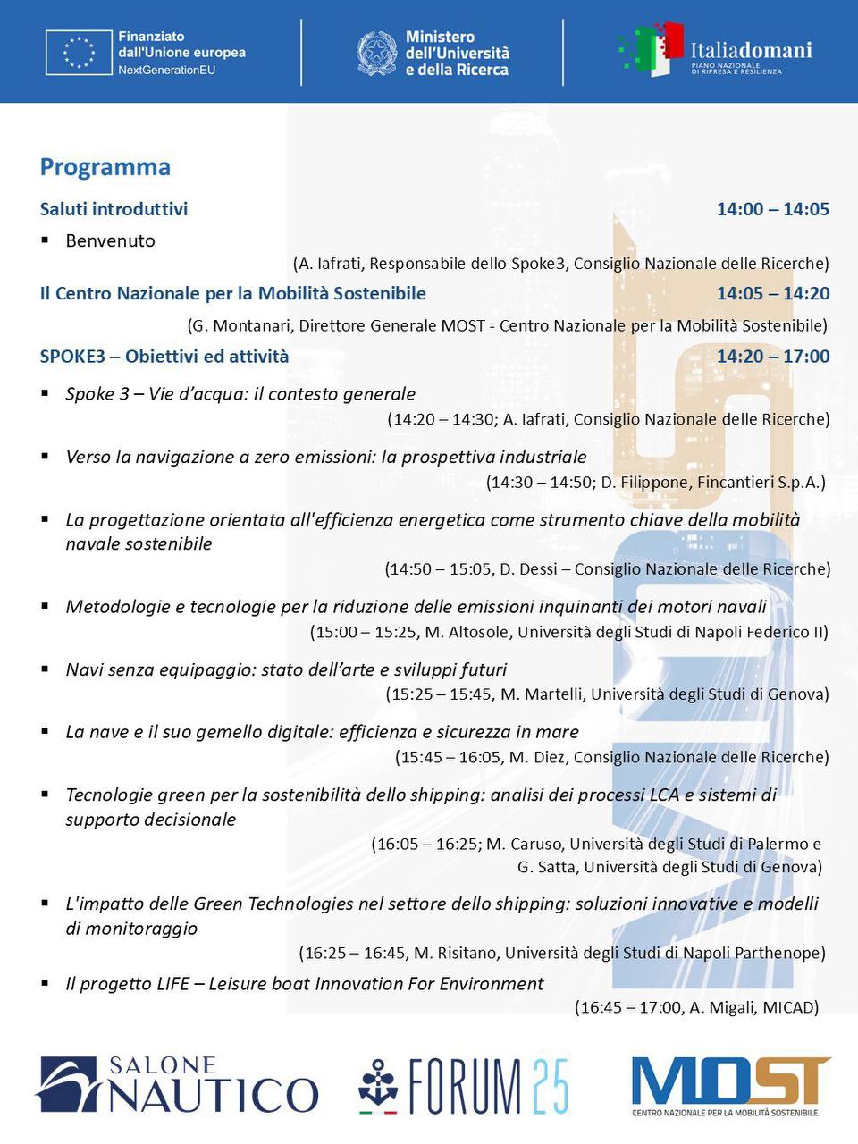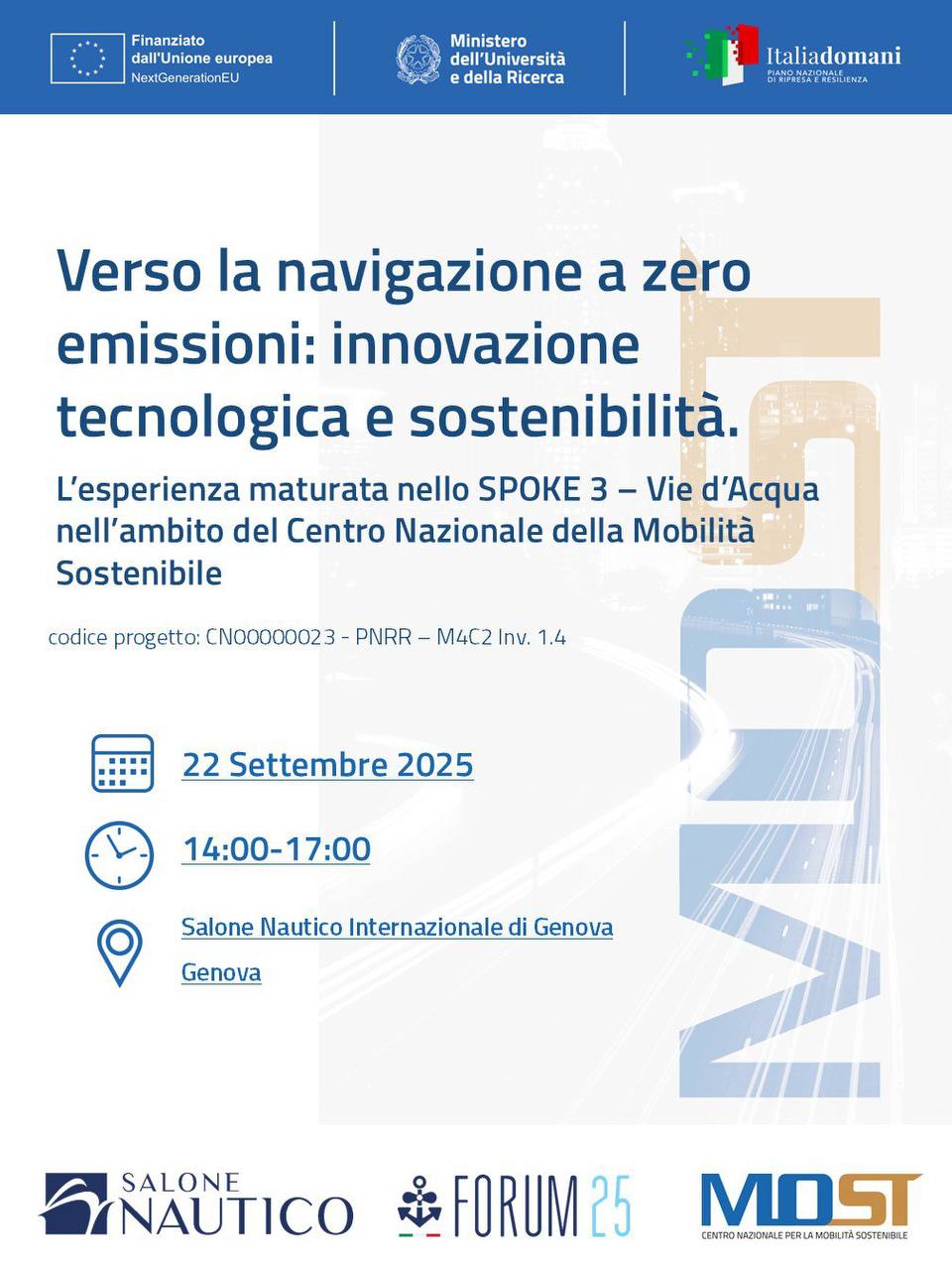 L’evento è organizzato nell’ambito dello Spoke 3 (Waterways) del progetto PNRR MOST , per disseminazione delle attività svolte nell’ambito dello spoke dai Partner (CNR, Spoke Leader, UniGe, UniNa, UniParthenope, UniPa, Fincantieri).